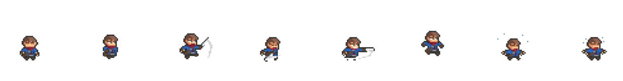 However, this is for one sprite. There are many sprites in one spritesheet image, how to load all of them? Using the example spritesheet image above, there are 8 rows. Each row represents a series of actions and contains different number of sprites.